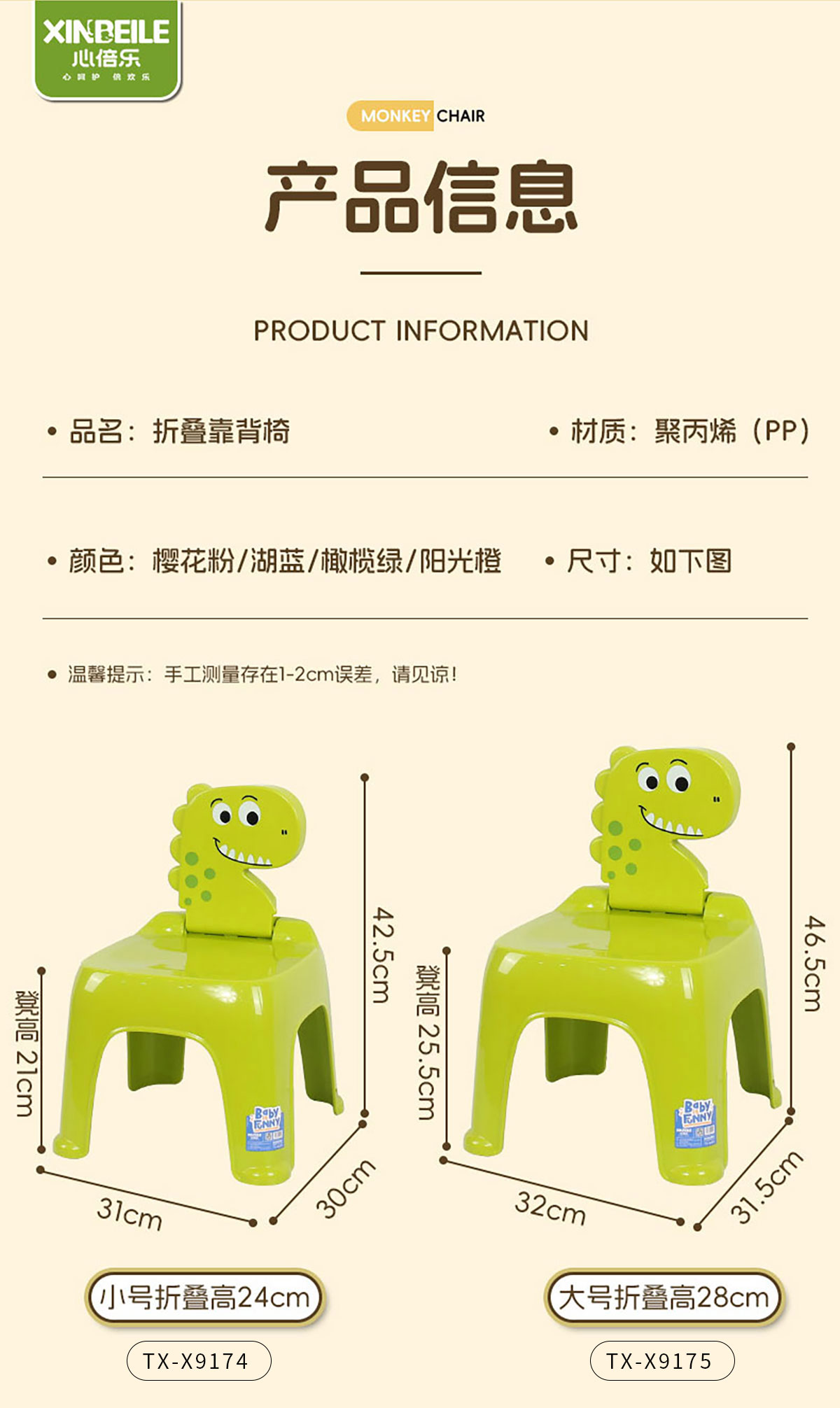 Size: TX-X9174(小):310*300*靠背展開(kāi)高440mm 310*300*靠背折疊高240mm