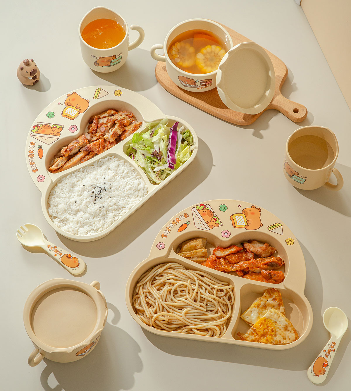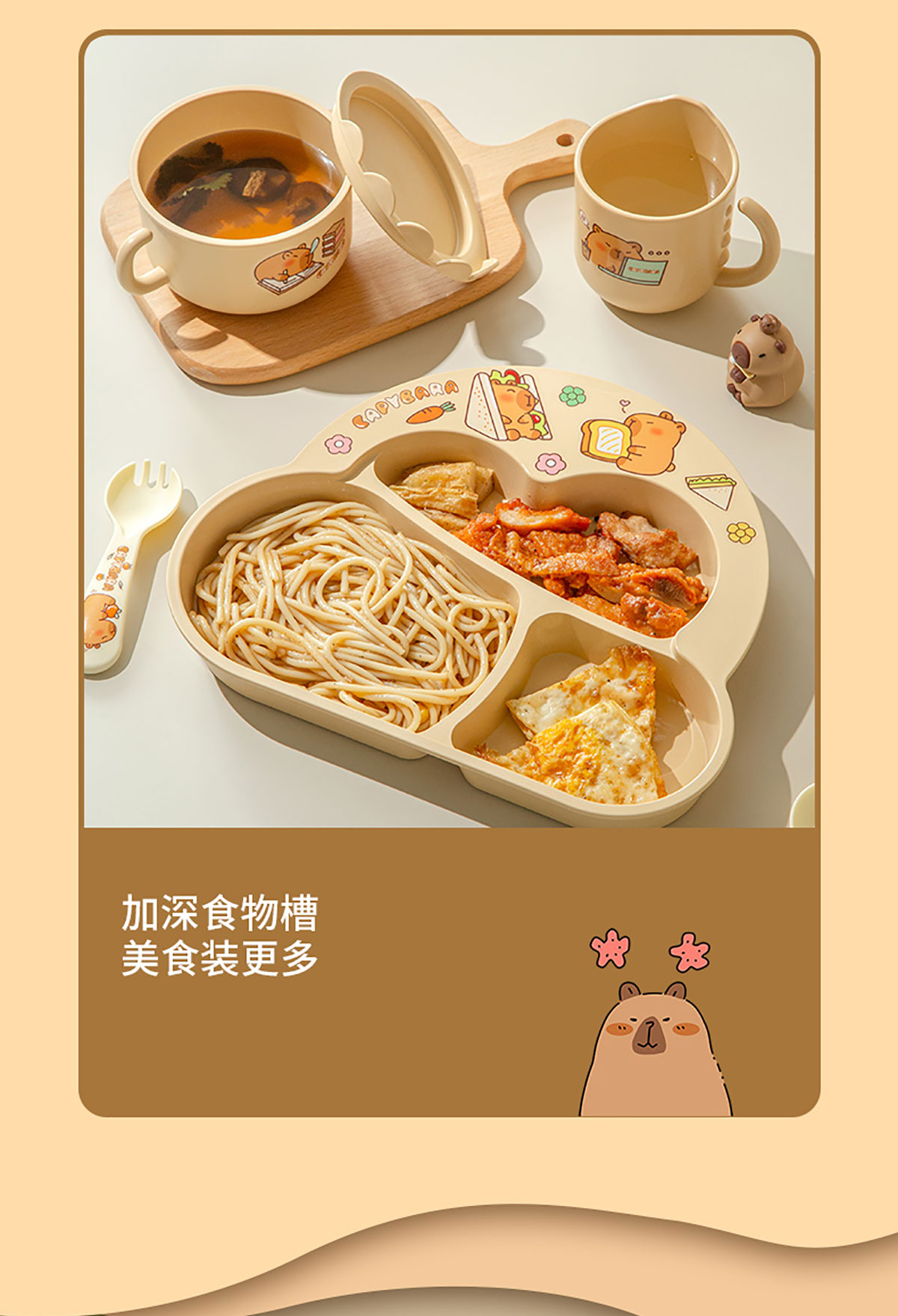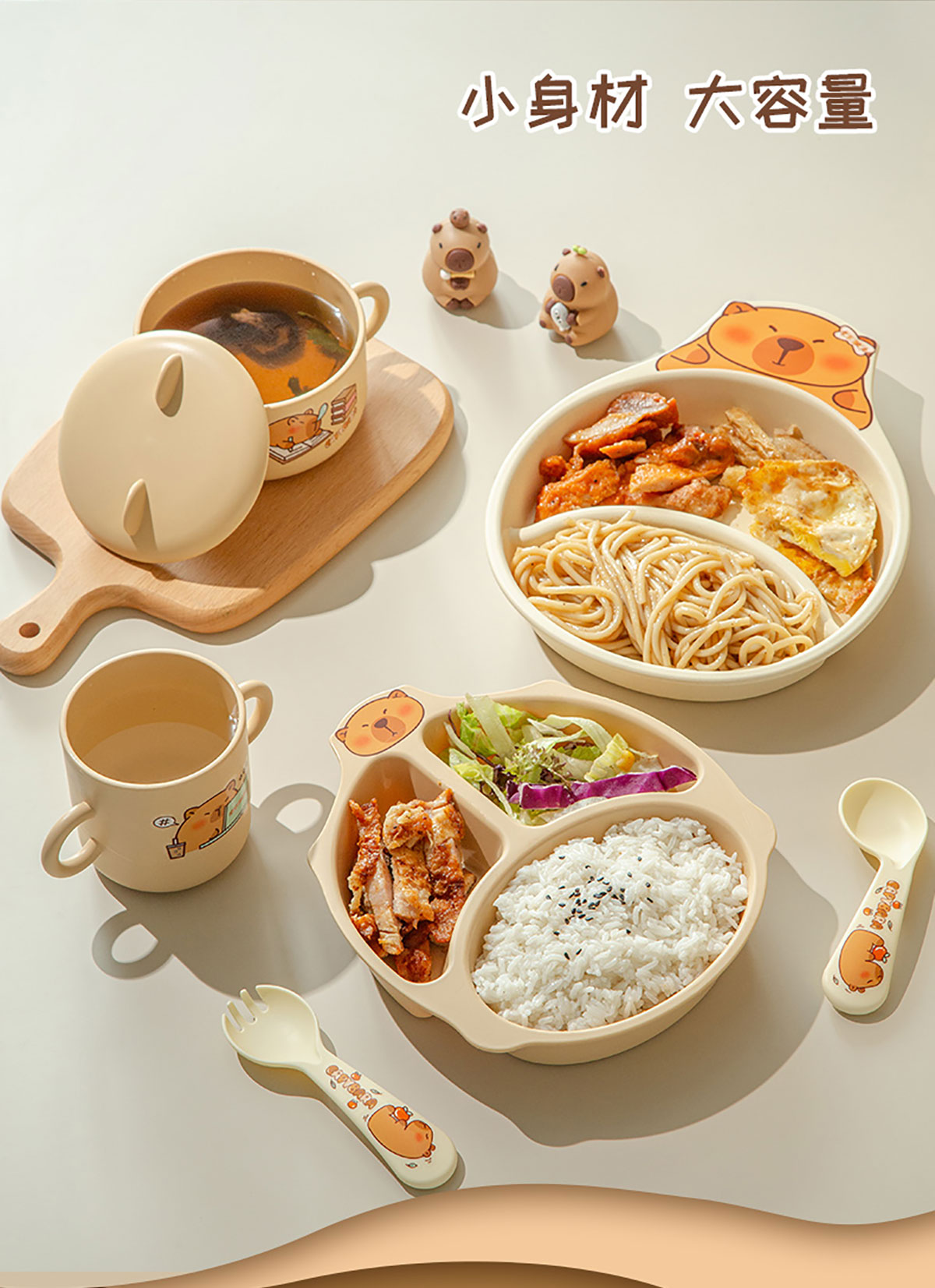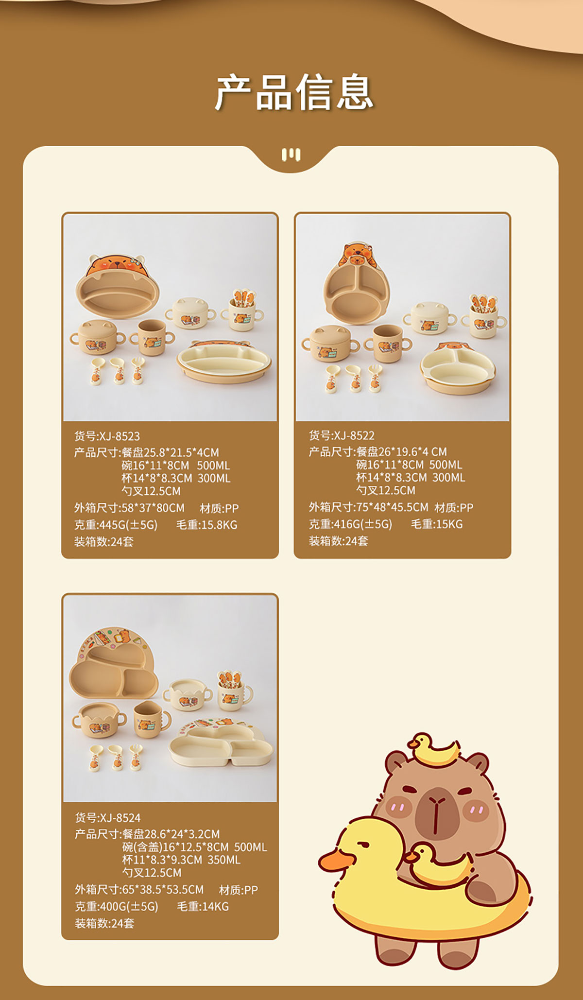 HH-XJ8524(萌豚豚):熊286*240*32mm/碗(含蓋)160*125*80mm/杯110*83*93mm/350ml 勺叉125mm